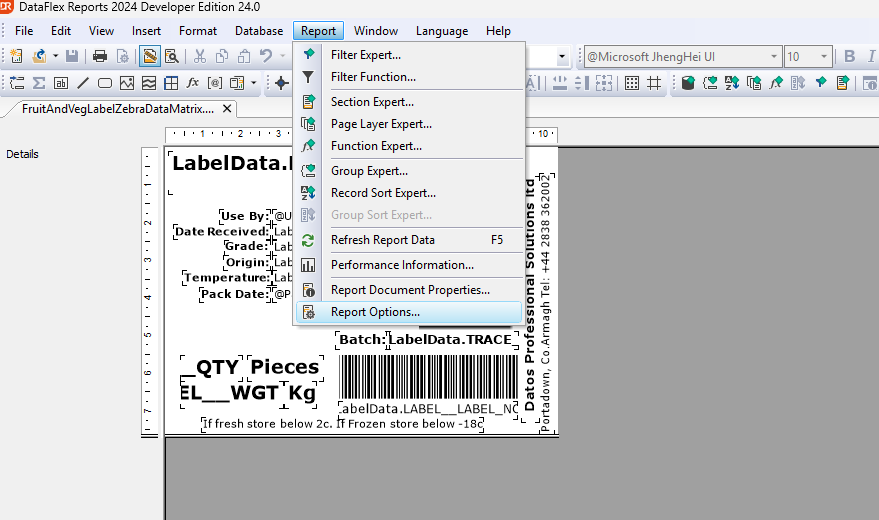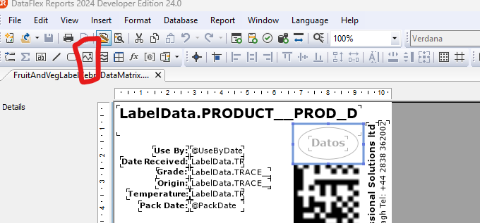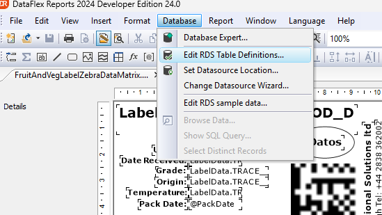 When you purchase Datos labelling you will have access to our standard templates that can either be used directly to print out labels or you can edit the label – You will be required to install a package called dataflex reports. Dataflex is the programming language used to run Season