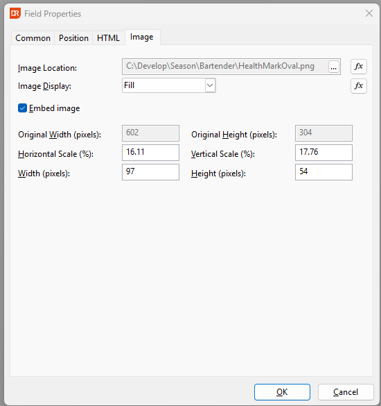 Once the image is in you will need to right click on the image and go to properties and from there you will need to enable ‘Embed Image’. this means that the image is now stuck to the label and will always print out no matter what computer does it. If you don’t embed it , in order to print out the logo the image location would need to be reachable on each machine which isn’t always going to be the case.