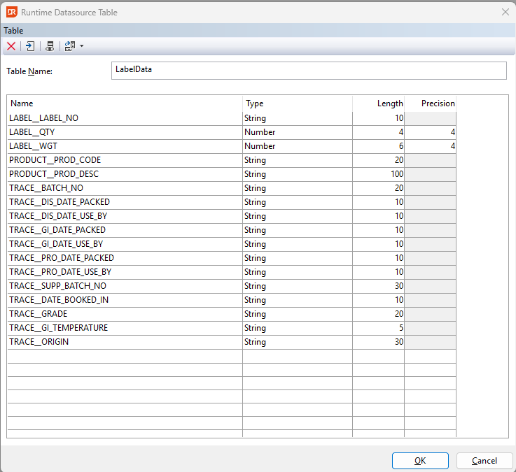 Data sources on the label are needed for you to display information from season. By default you will have sources from the traceability setup but you will also have the option to add data like, customer set up information , route information , order specific information etc.